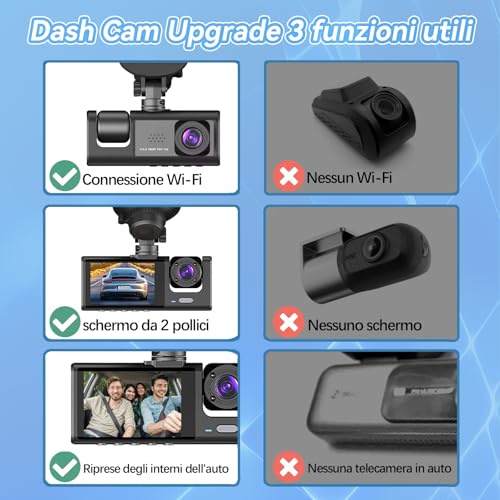 3 Channel 1080P Dash Cam with App Control, 5GHz WiFi, 32GB SD Card Included, 170° Wide Angle, Loop Recording & G-Sensor for 24H Parking Monitoring