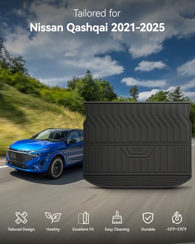 - PERFECT FIT for NISSAN QASHQAI 2022-2026: Boot liner custom fit design edge to edge for maximum coverage and protection with TPE (thermoplastic elastomer) material which ensures your more strength, resilience, durability and elasticity, this car mats is matchable with 2022 2023 2024 2025 2026 nissan qashqai