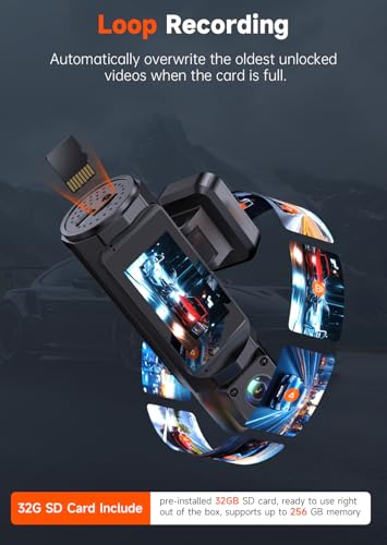 - [Loop Recording & Intelligent Lock Evidence] – Our loop recording feature automatically overwrites old files when storage nears full, extending the lifespan of your SD card while ensuring vital footage is never missed. Smart file rotation guarantees continuous recording without manual intervention. The built-in 3-axis G-sensor detects significant impacts, locking video instantly to prevent deletion or tampering. Locked files contain GPS metadata and timestamps, providing admissible evidence for insurance claims.