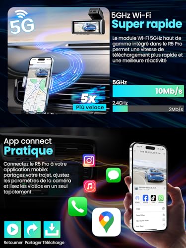 - 📶 5GHz Wi-Fi + App Control + External GPS – Enjoy ultra-fast downloads—up to 5x faster than traditional 2.4GHz—via 5G Wi-Fi. Use the free app (iOS & Android compatible) to preview live footage, adjust settings, download and share clips instantly. An external GPS module (included) records real-time location, speed, and route information, which can be viewed via our GPS Player on PC—ideal for providing accurate driving records when needed.