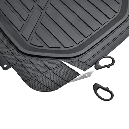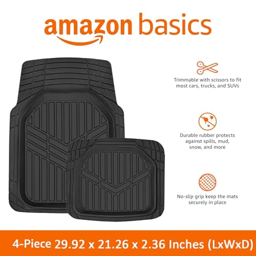 Amazon Basics Deep Dish Universal Heavy Duty PVC Floor Mats Set 4 piece with Cargo Liner, All-Weather Protection waterproof Trim To Fit for Cars, Automotive, SUVs, Sedan, Trucks, Black