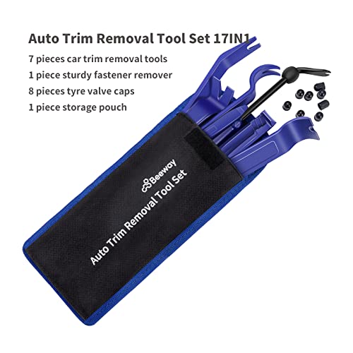 BEEWAY Auto Trim Removal Tool Set – 17in1 Car Upholstery Repair Kit/Fastener Remover/Pry Tools for Interior Trim Panel Door Window Audio Dashboard with Storage Pouch