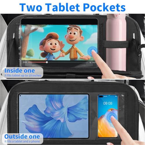 TCJJ Car Seat Organiser, Car Organiser Back Seat for kids, Car Backseat Seat Kick Protector with Tray and Touch Screen Tablet Storage Pockets Black/2 Pack