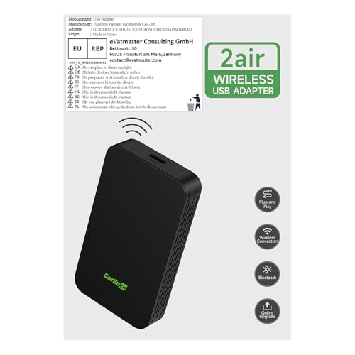 - 【More stable and smooth wireless upgrade experience】Built-in 2.4G MHz Bluetooth and 5.8G MHz WIFI modules, even if the phone is in the pocket, it can be easily identified. The chip used in Carlinkit 2 air greatly reduces the delay rate and transmits high frequency in real time, allowing you to use navigation or listen to music smoothly and create a pleasant driving atmosphere. The new version is released, the connection is stable, and it provides you with a safe and stable driving environment.