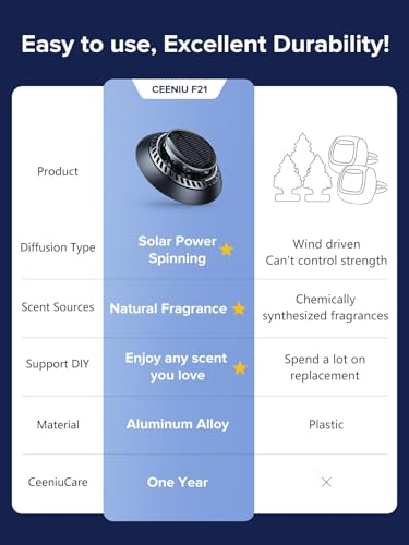 Ceeniu Car Air Fresheners, Solar Powered, Aluminum Alloy, Fragrance DIY, Premium Car Accessory, F21 Car Fragrance
