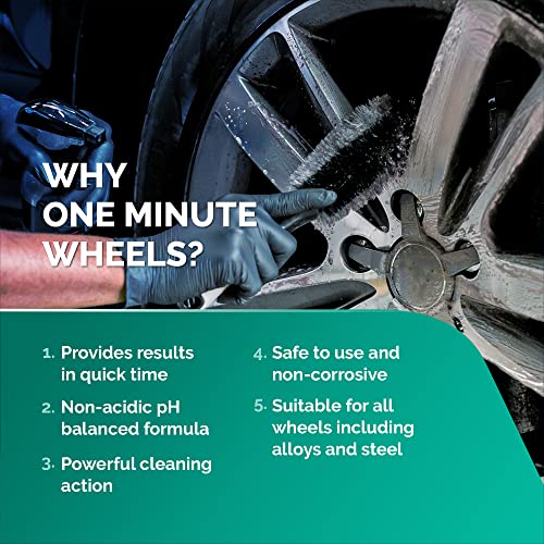 - One Minute Wheels offers powerful cleaning action which easily removes oxidation, grime and brake dust from the most intricate of wheel designs. Simply spray on, agitate with the wheel brush, rinse off.