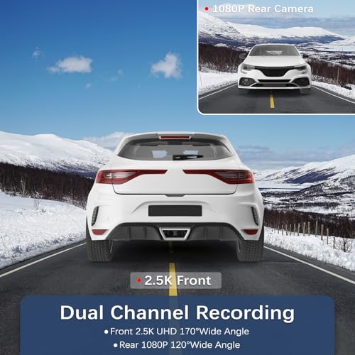 - High-Definition Recording: Record stunning footage both day and night with this dash cam’s 2.5K front and 1080P rear cameras. The expansive 170° front and 140° rear views minimise blind spots, ensuring vital evidence in case of incidents.