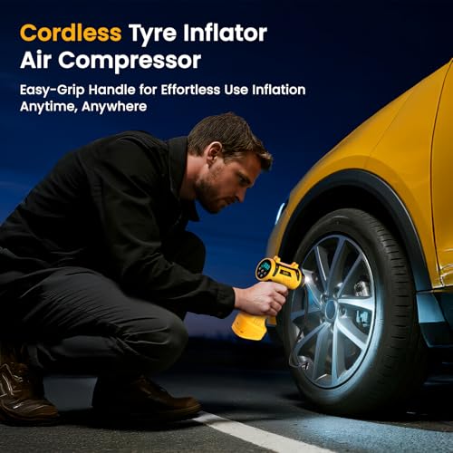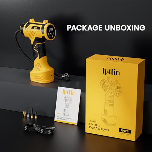 - 【Cordless & Portable Design】Experience unmatched convenience with our lightweight, handheld tyre inflator. Ipflin cordless car tyre inflator inflates tyres, sports balls, and pool floats anywhere – no cords, no garage needed. This tyre pump weighs only 600g, making it very convenient to use or carry, perfect for roadside emergencies or outdoors.