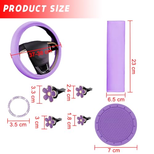 JNNJ 10 Pieces Steering Wheel Cover Universal, Beautiful Steering Wheel Cover, Cute Car Accessories Set, With Seat Belt Shoulder Pads Cup Holders, Car Accessories for Women Interior(Purple)