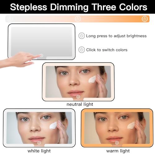 🚗【Touch Design and Multi-function Lighting】Experience intuitive touch operation, one-touch switch between three lighting modes – bright white, warm white and warm color, to meet different makeup needs. Long press the touch panel to easily adjust the light brightness and achieve personalized lighting effects.