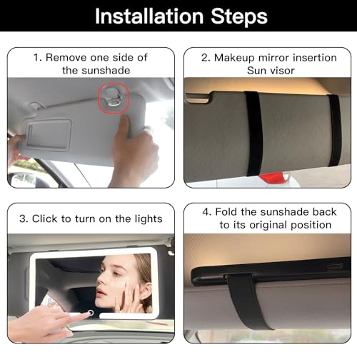 • 🚗【Touch Design and Multi-function Lighting】Experience intuitive touch operation, one-touch switch between three lighting modes – bright white, warm white and warm color, to meet different makeup needs. Long press the touch panel to easily adjust the light brightness and achieve personalized lighting effects.