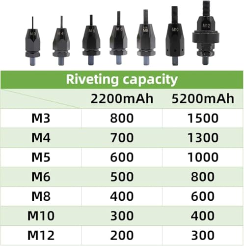 - Automatic Rivet Nut Tool: Features M3 to M12 pull heads for automatic riveting in just 3 seconds. Includes a recording function for the riveting process to ensure precision, eliminating the need for manual forward and backward switching.