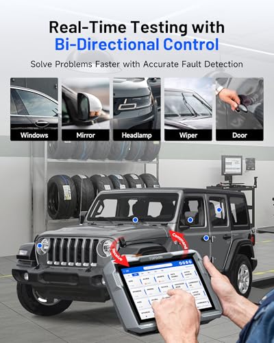 - Bidirectional Scan Tool — This bidirectional car diagnostic tool sends commands to the vehicle's ECU for active testing, enabling users to accurately and quickly locate faulty components such as injectors, coolant pumps, windows, wipers, headlights, mirrors, etc, which is the ideal choice for workshops/automotive repair shops as it significantly reduces mechanic's diagnostic time.