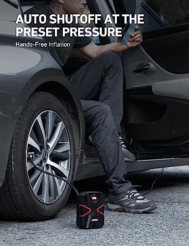 AstroAI 12V DC Tyre Inflator Air Compressor for Cars, Digital Pump 150 PSI with Preset Pressure & Auto Shutoff Feature (Black & Red)