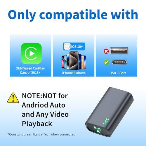 - đăReliable Support & Compatibilityă Includes 2 years warranty and 24/7 technical support. Note: not for android auto, Only compatible with iOS 10+ and factory-installed wired CarPlay systems with usb c port. Does not support YouTube and Netflix video playback. Not work with heads-up display & driver screen.