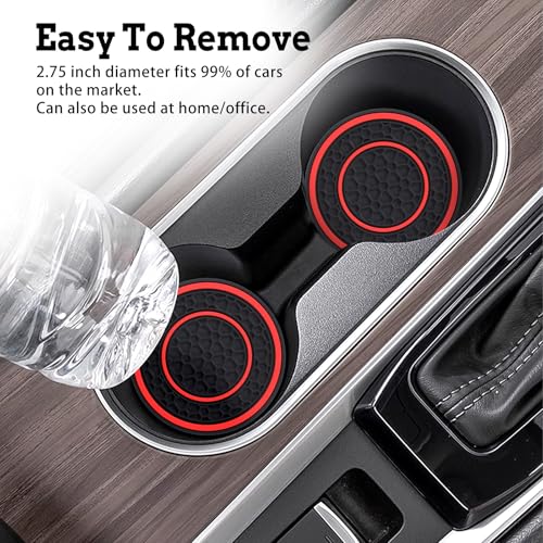 - Packaging Information: You will receive 2 non-slip car cup holder coasters with black background and red circle, 2.75 inches in diameter and 0.18 inches in thickness, these anti dust cup mats are lightweight and universal size design suitable for most vehicles, homes, offices and other scenarios. Before placing an order, please measure the diameter of your car cup holder to ensure a suitable fit.