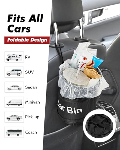 Zacro Car Bin with 5 Garbage Bags – Foldable and Water Resistant Auto Trash Bag Camp for Garbage and Litter Storage and Collection
